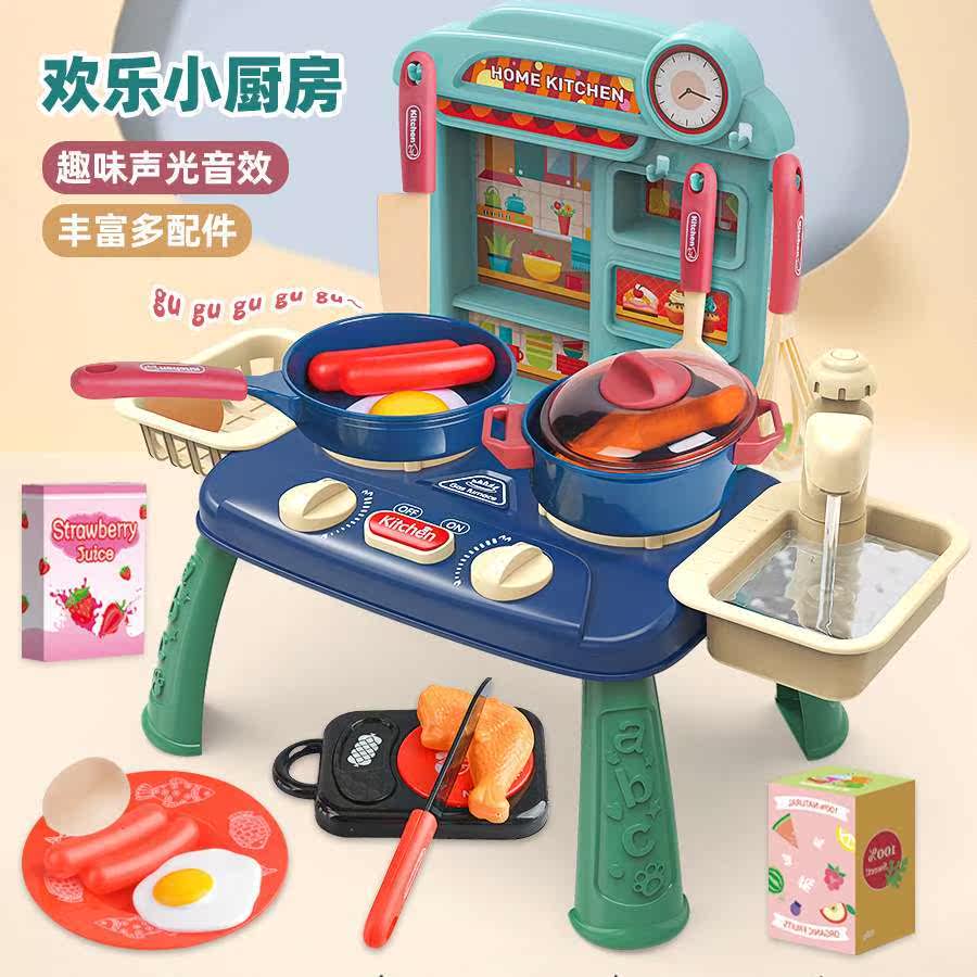 儿童过家家迷你餐具厨具餐台带声光可出水女男孩仿真厨房煮饭玩具