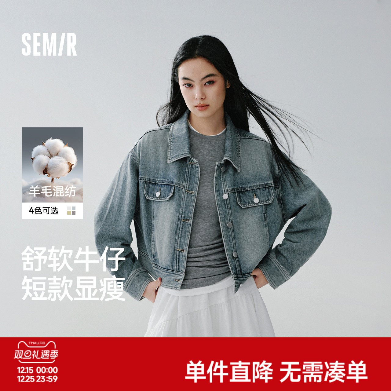 森马牛仔外套女春季短款翻领落肩宽松做旧2026新款工装风高街夹克