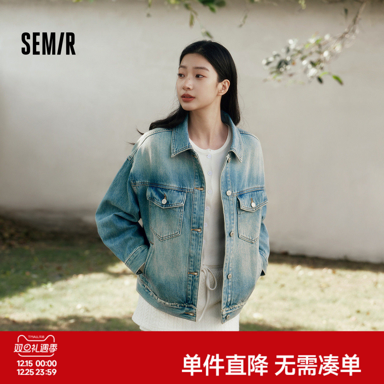森柔|森马牛仔外套女春季翻领做旧宽松落肩衣服美式街头甜酷夹克