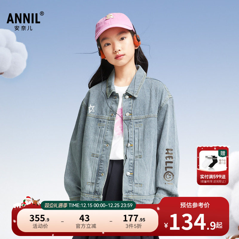 安奈儿童装男童女童牛仔外套2025春新款纯棉休闲透气宽松弹力