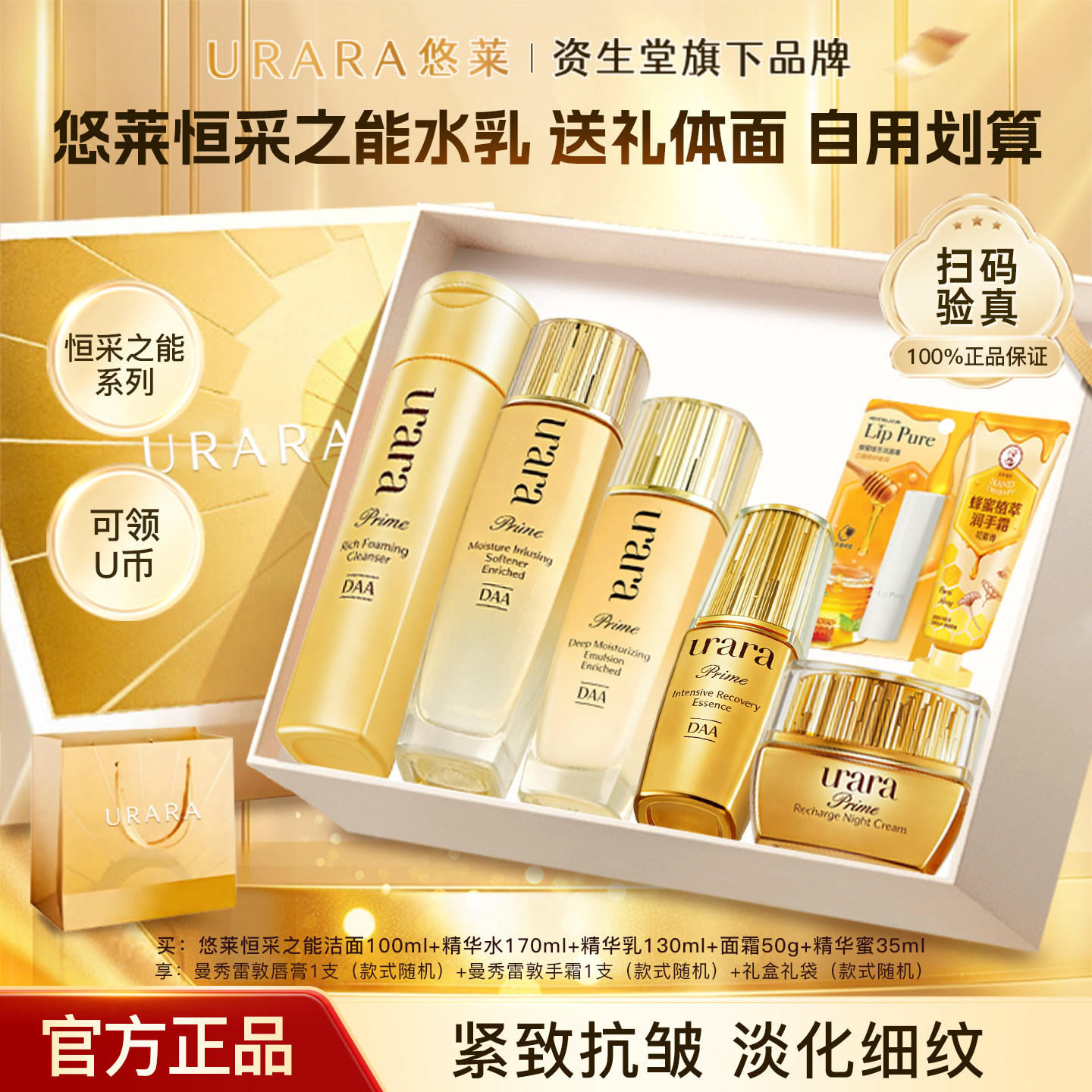 悠莱水乳套装恒采之能水乳紧致抗皱补水保湿化妆品护肤品礼盒正品