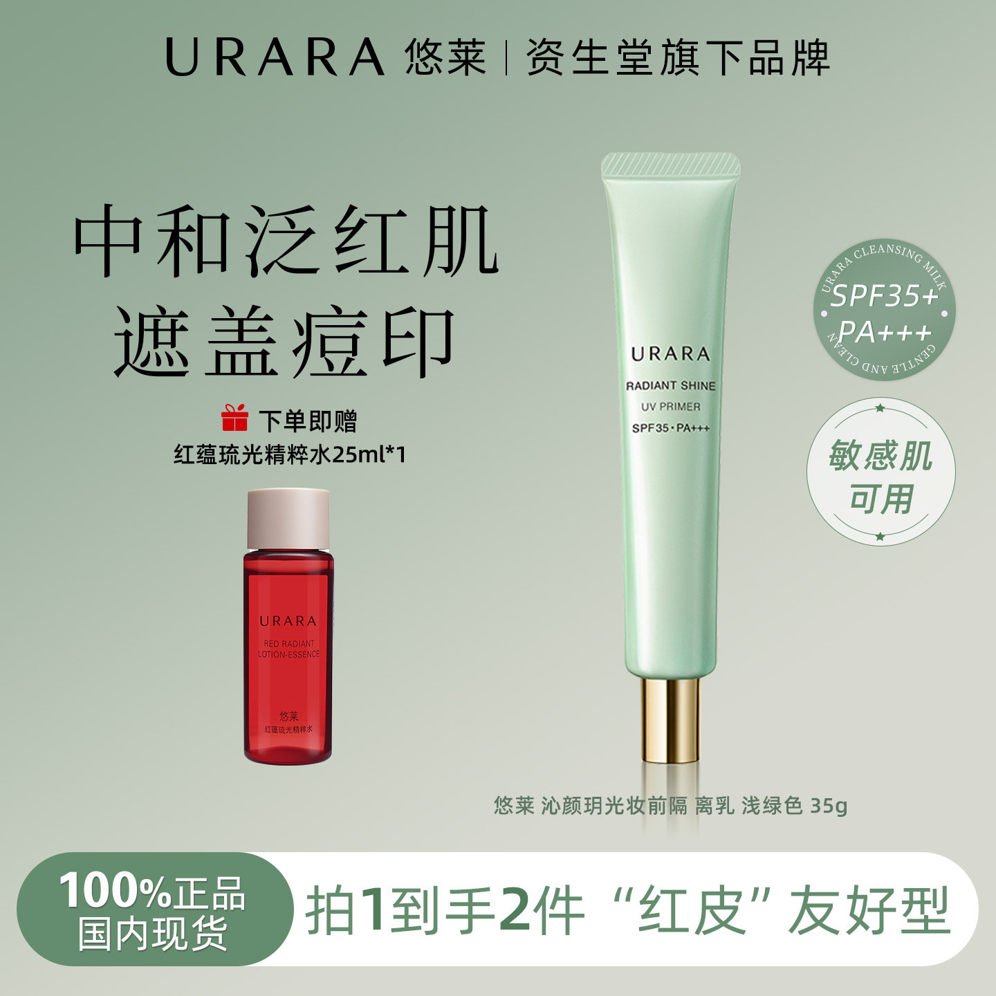 URARA/悠莱沁颜玥光防晒乳隔离乳35g官方旗舰店紫外线遮盖痘印女