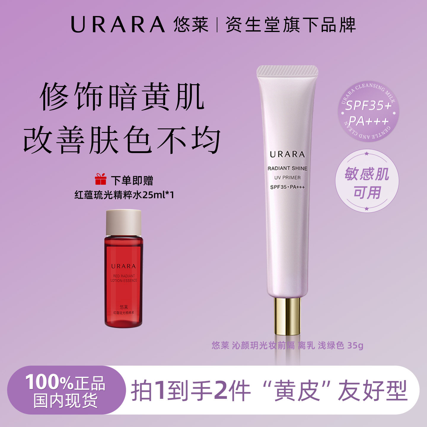URARA/悠莱沁颜玥光防晒乳隔离乳35g官方旗舰店保湿紫外线女防水