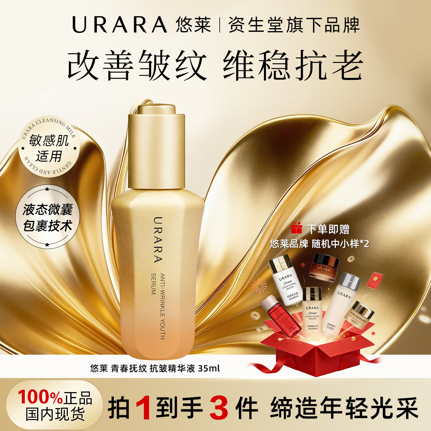 URARA/悠莱青春抚纹抗皱精华液官方旗舰店资生堂正品抗老改善皱纹
