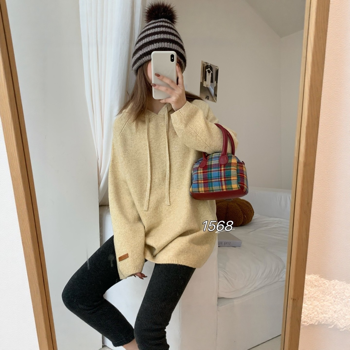 古与色秋季新品韩版宽松套头中长款百搭慵懒风高领纯棉针织毛衣女