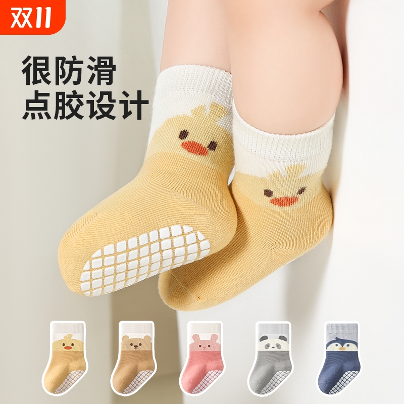 宝宝袜子春秋季纯棉儿童防滑学步地板袜秋冬男女童幼儿1-3-5-6岁8