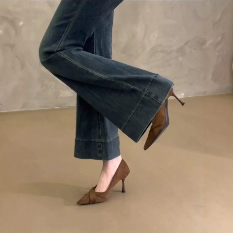 2025秋冬新款法式气质细跟绒面尖头高跟鞋女通勤显瘦百搭浅口单鞋