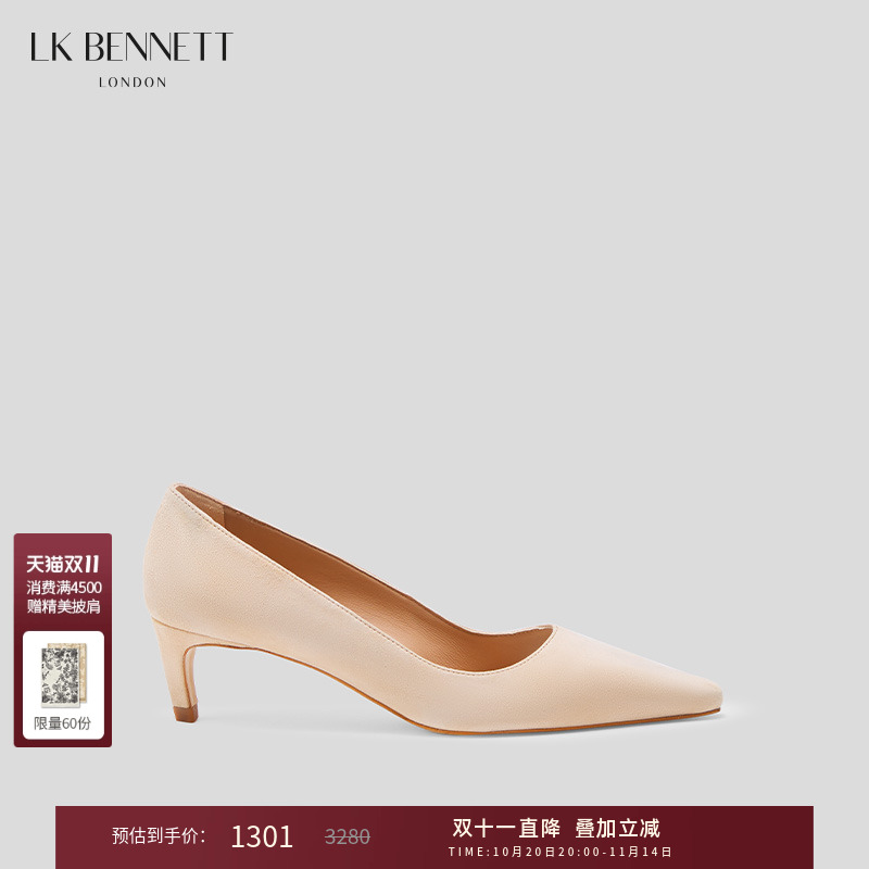 lkbennett裸色绒面尖头高跟鞋女2024新款5cm温柔气质职业通勤单鞋