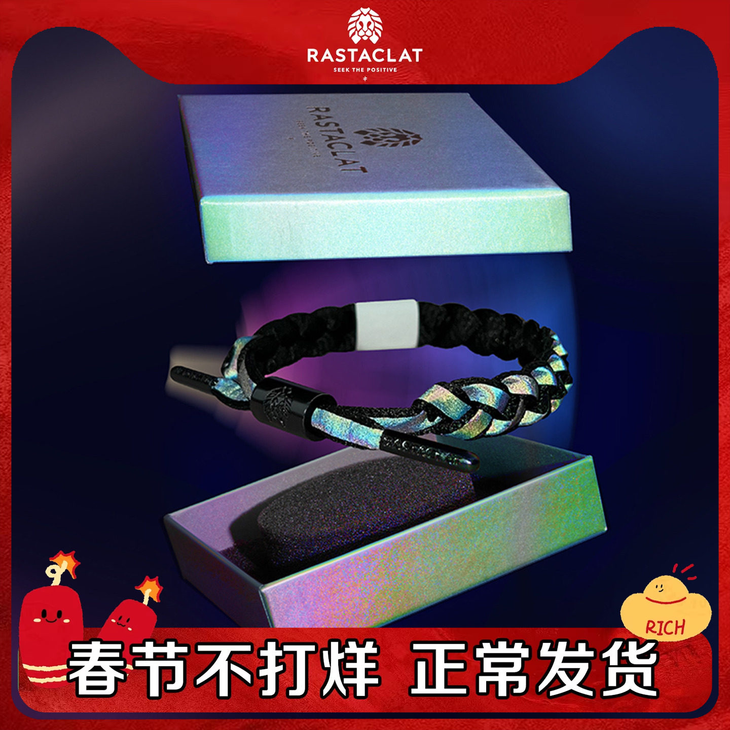 【余思冉同款】RASTACLAT全息限定黑全息彩虹反光 小狮子手链礼物