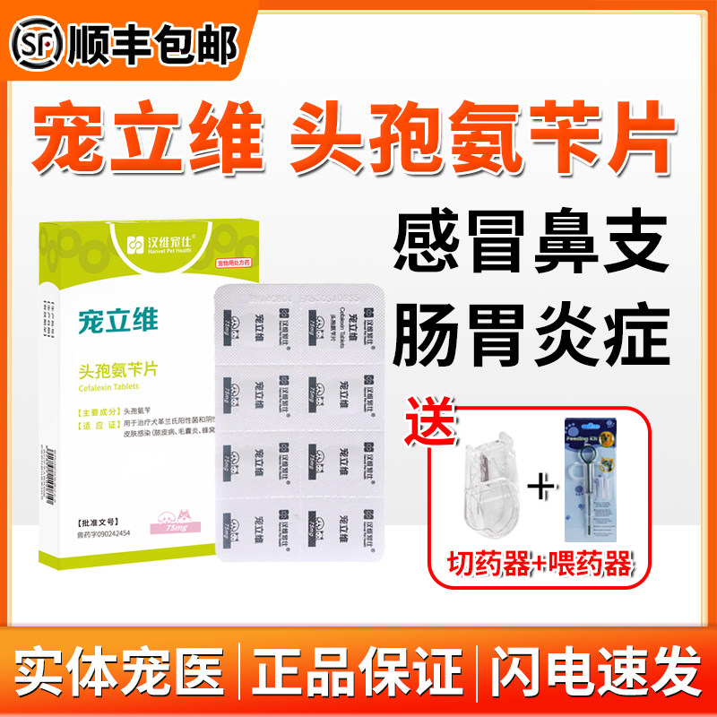 汉维宠立维头孢氨苄宠物消炎药猫狗狗皮肤病胃肠炎脓皮症泌尿感染