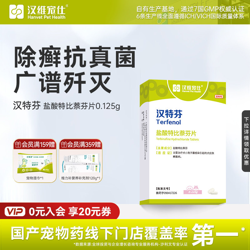 汉维宠仕狗狗皮肤病抑菌深度除癣广谱抗真菌汉特芬盐酸特比萘芬药