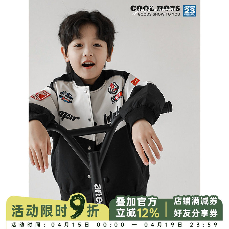 幼悠男童字母印花撞色拼接棒球服春秋新款儿童四合开口帅气外套潮
