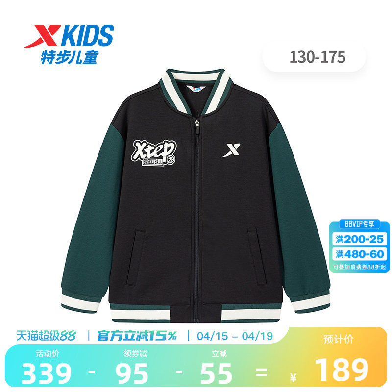 特步童装男童春季新款男童休闲针织外套儿童运动中大童亲肤棒球服