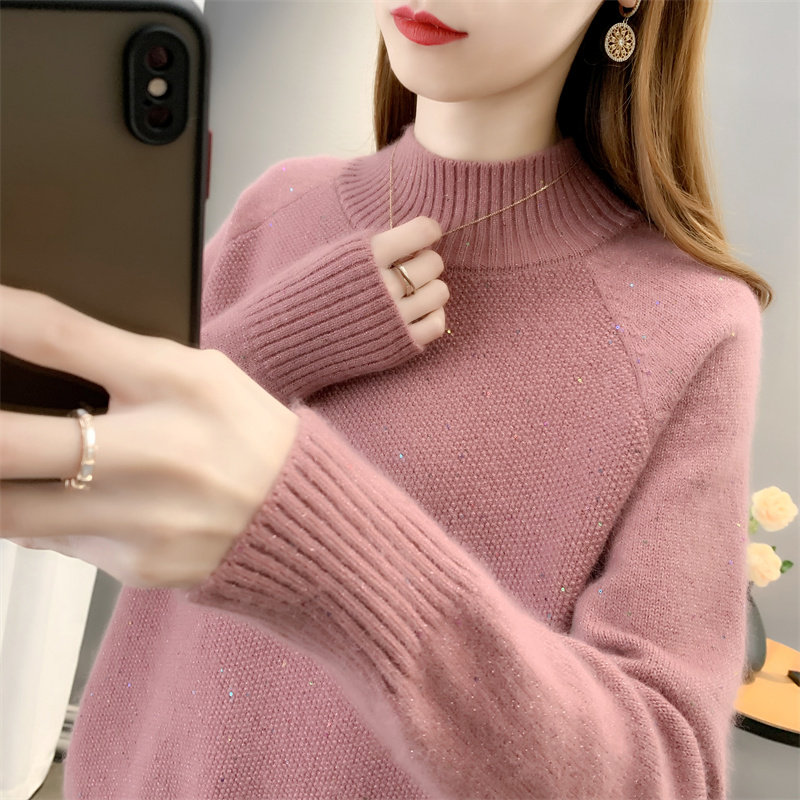 - 半高领修身长袖针织衫女套头