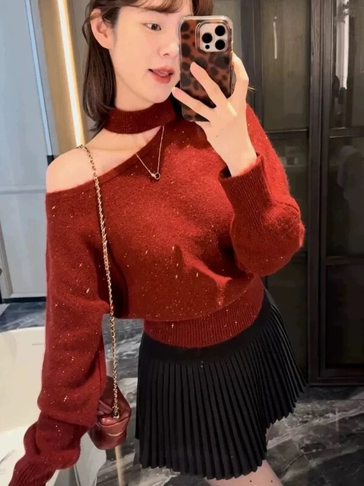 - 一字领毛衣女套头