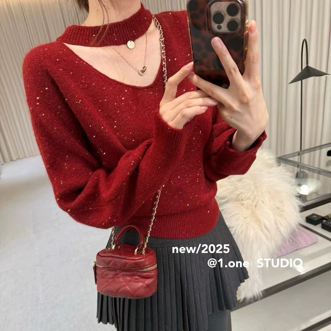 - 针织亮片毛衣