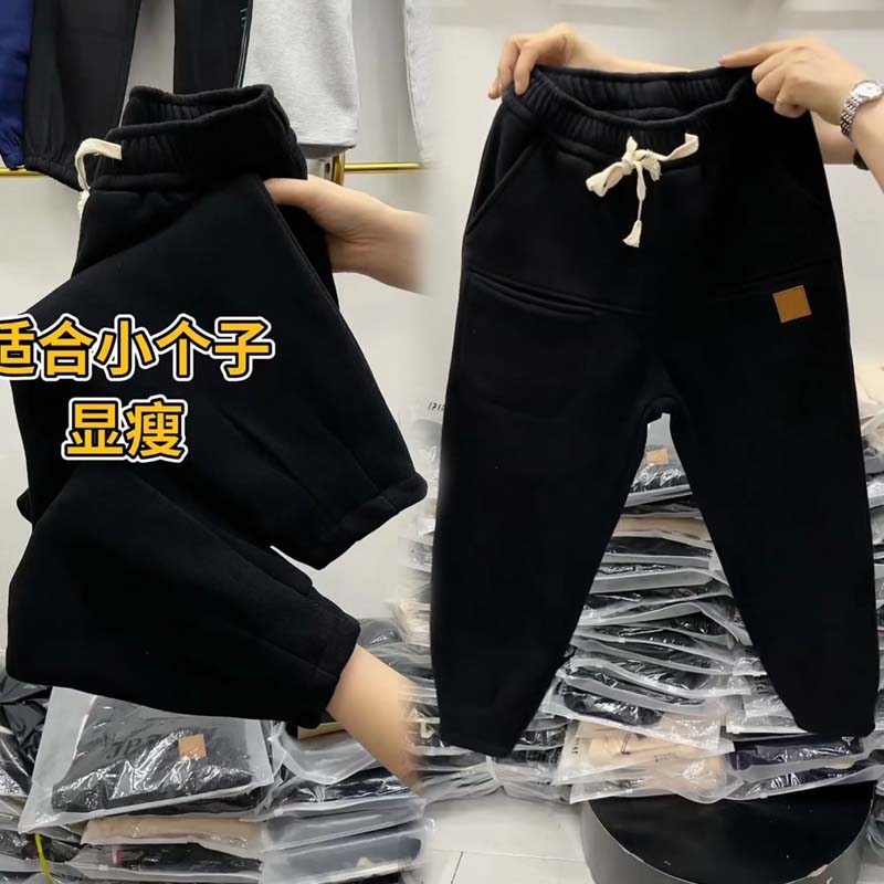 加绒加厚束脚休闲裤女2025冬季新款宽松长毛裤时尚百搭哈伦裤卫裤