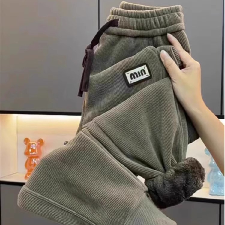 雪尼尔哈伦裤女冬季加绒加厚妈妈裤子女宽松大码百搭休闲裤直筒裤