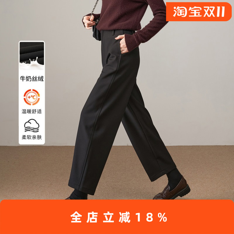 IMCC设计感小众加绒加厚直筒哈伦裤女冬新宽松醋酸羊毛休闲九分裤