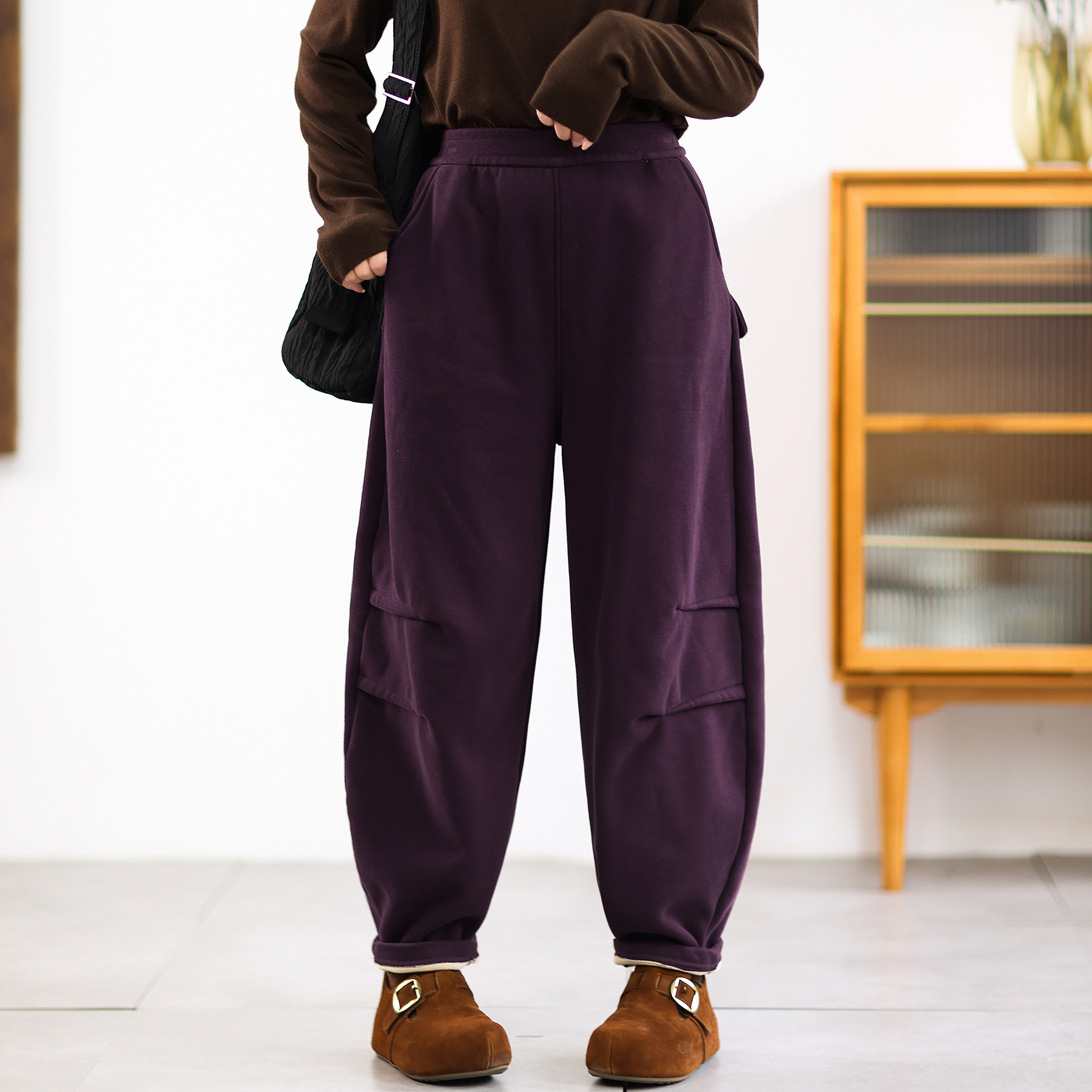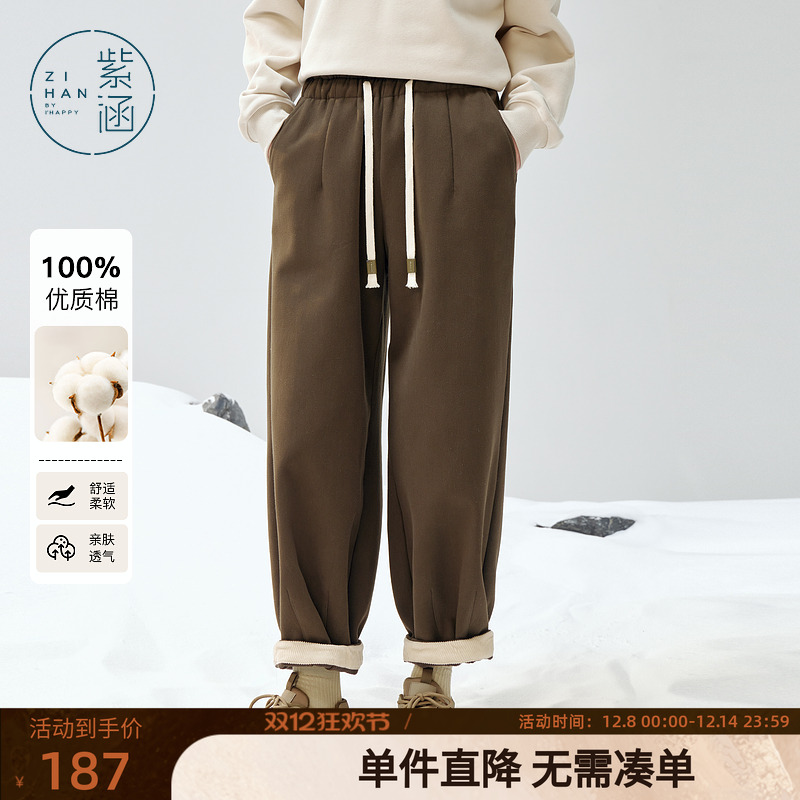 紫涵100%纯棉哈伦裤女冬季新款宽松显瘦高腰抽绳休闲裤子萝卜裤子