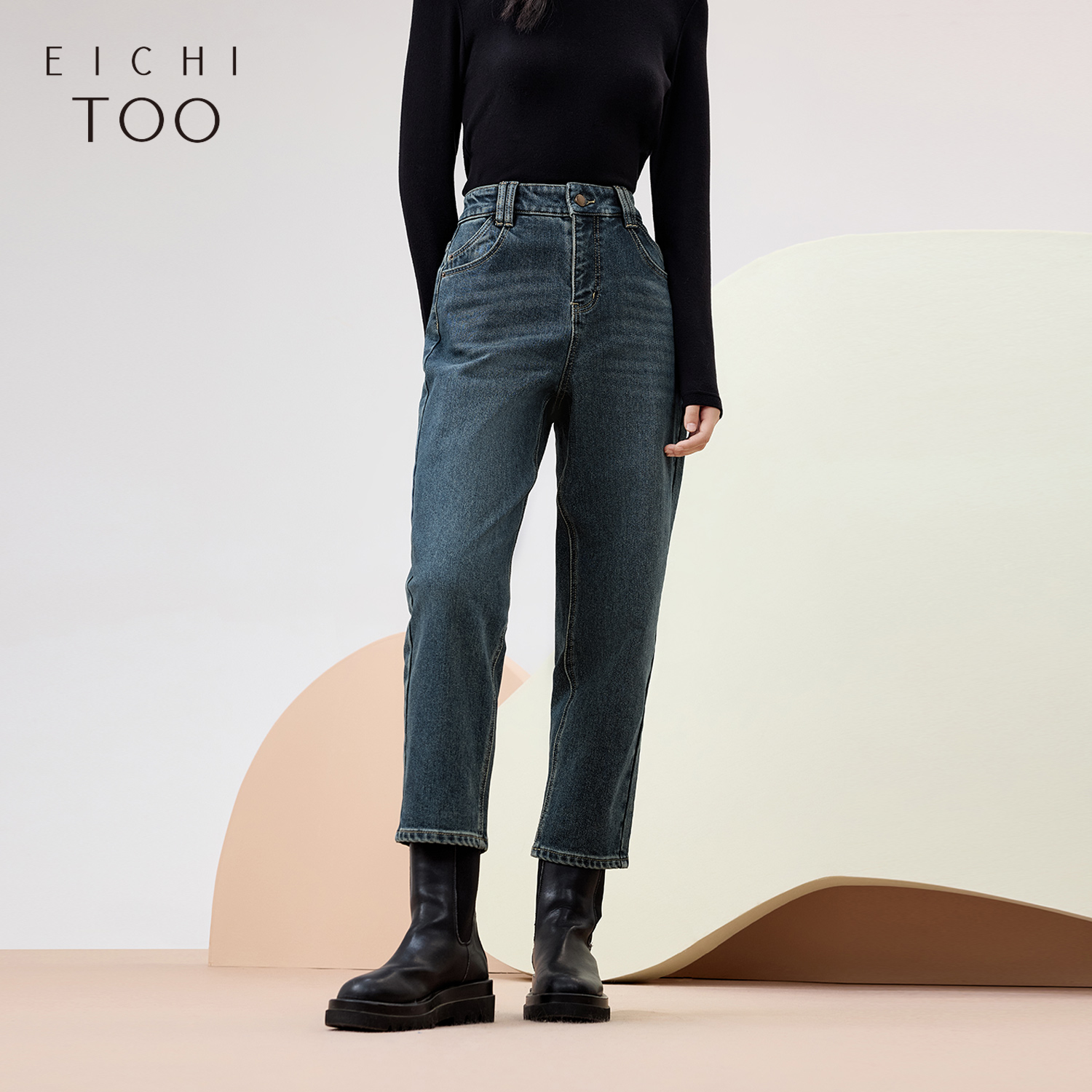 西町村屋哈伦裤女冬新款简约文艺抽绳设计宽松牛仔长裤HD8301006