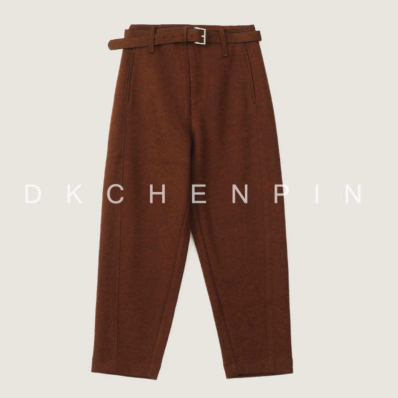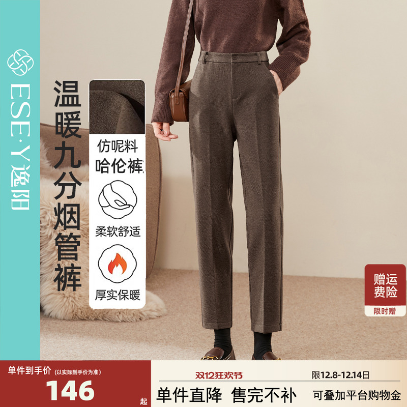 逸阳毛呢哈伦裤女冬季新款加厚咖色休闲九分小个子高腰直筒西装裤