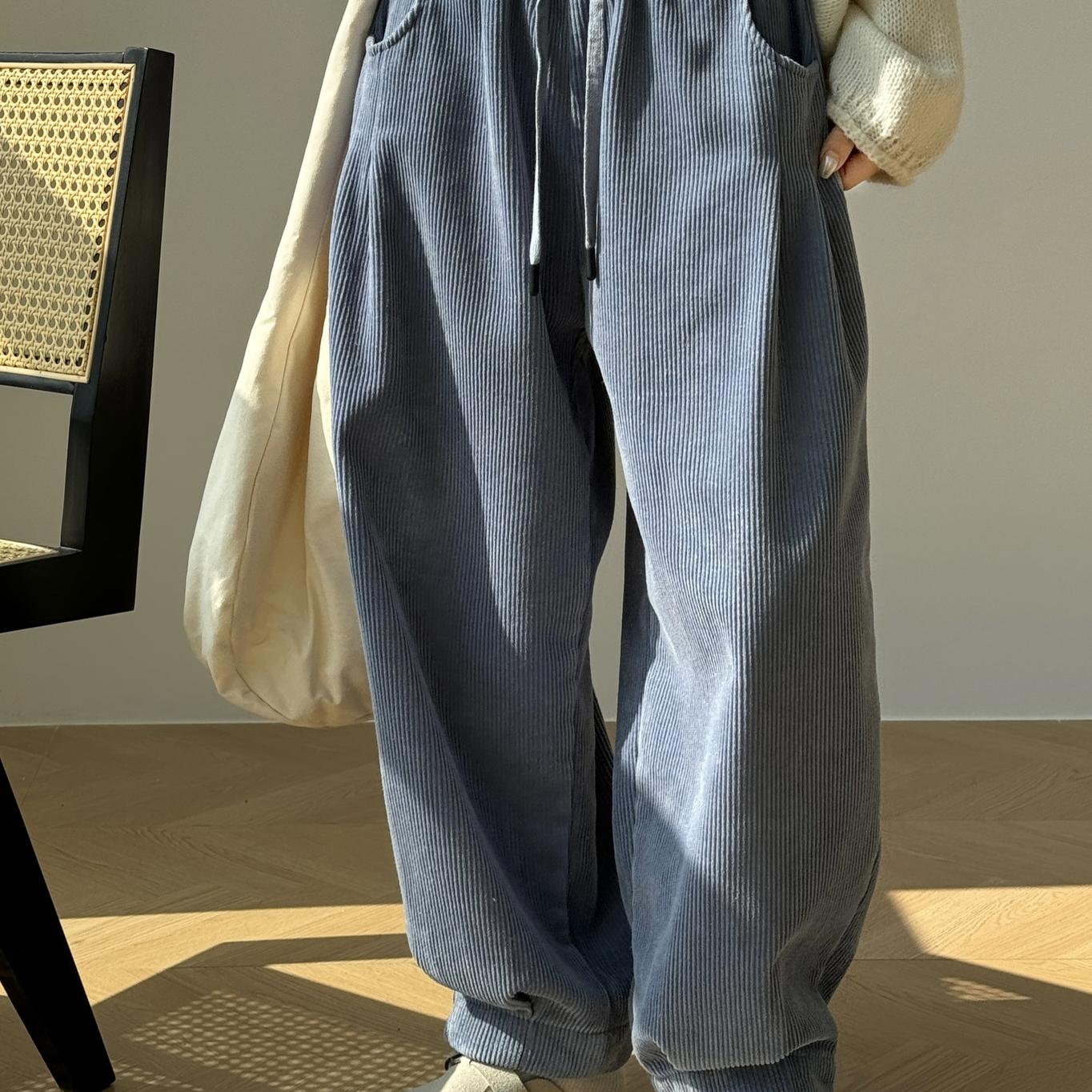 ManMans蓝色加绒加厚灯芯绒哈伦裤女冬季新宽松显瘦保暖休闲长裤