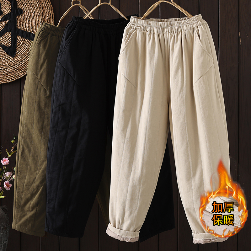 绿素棉 原创简约加绒直筒哈伦裤女冬装防鼓包遮肉显瘦加厚休闲裤