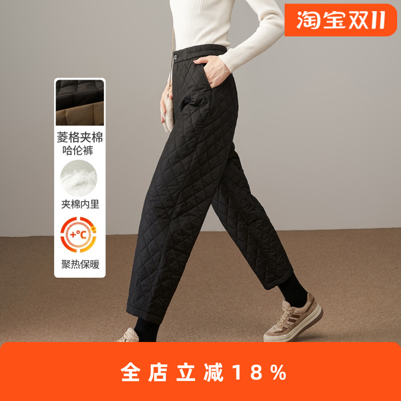 娅丽达加厚棉裤哈伦裤女冬季休闲裤2025新款裤子时尚镰刀裤保暖裤