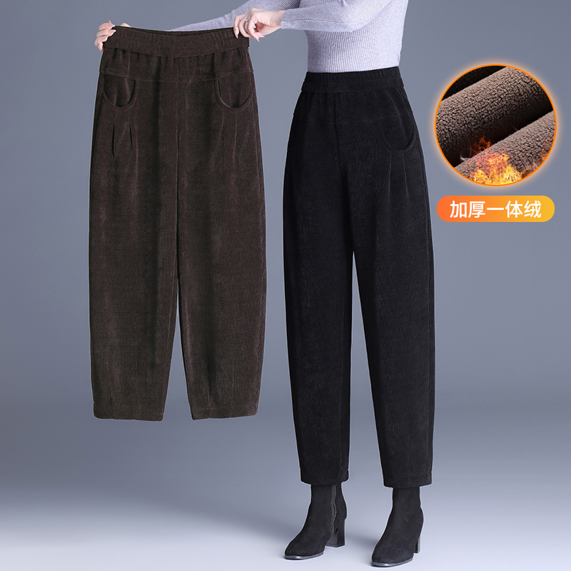 雪尼尔哈伦裤女冬季加绒加厚妈妈裤子女宽松大码百搭休闲裤阔腿裤