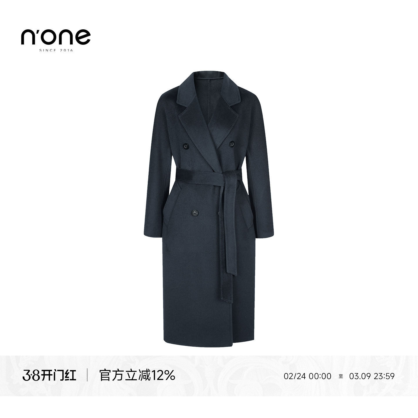 none 双面羊绒混纺大衣女中长款2025冬季新款双排扣腰带毛呢外套