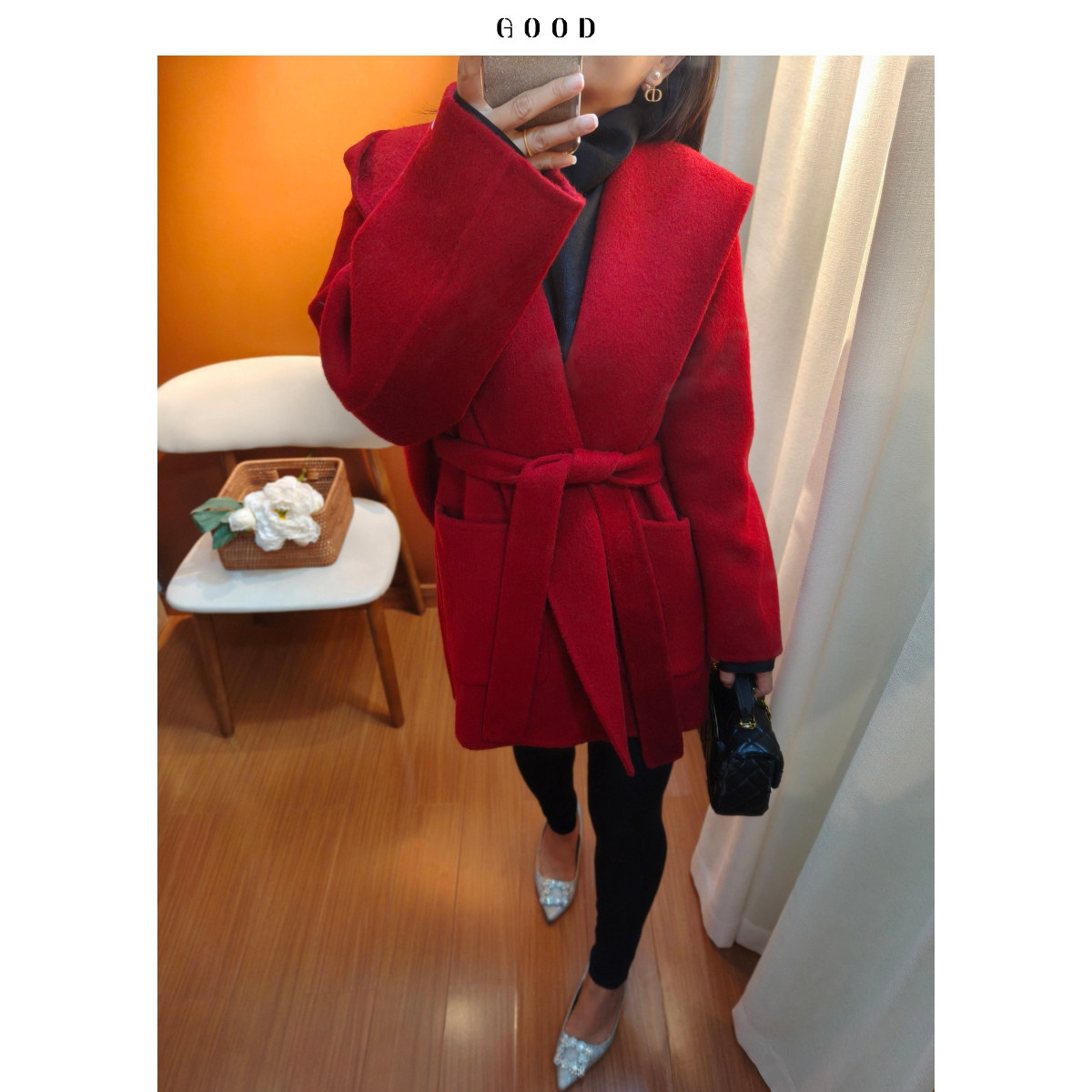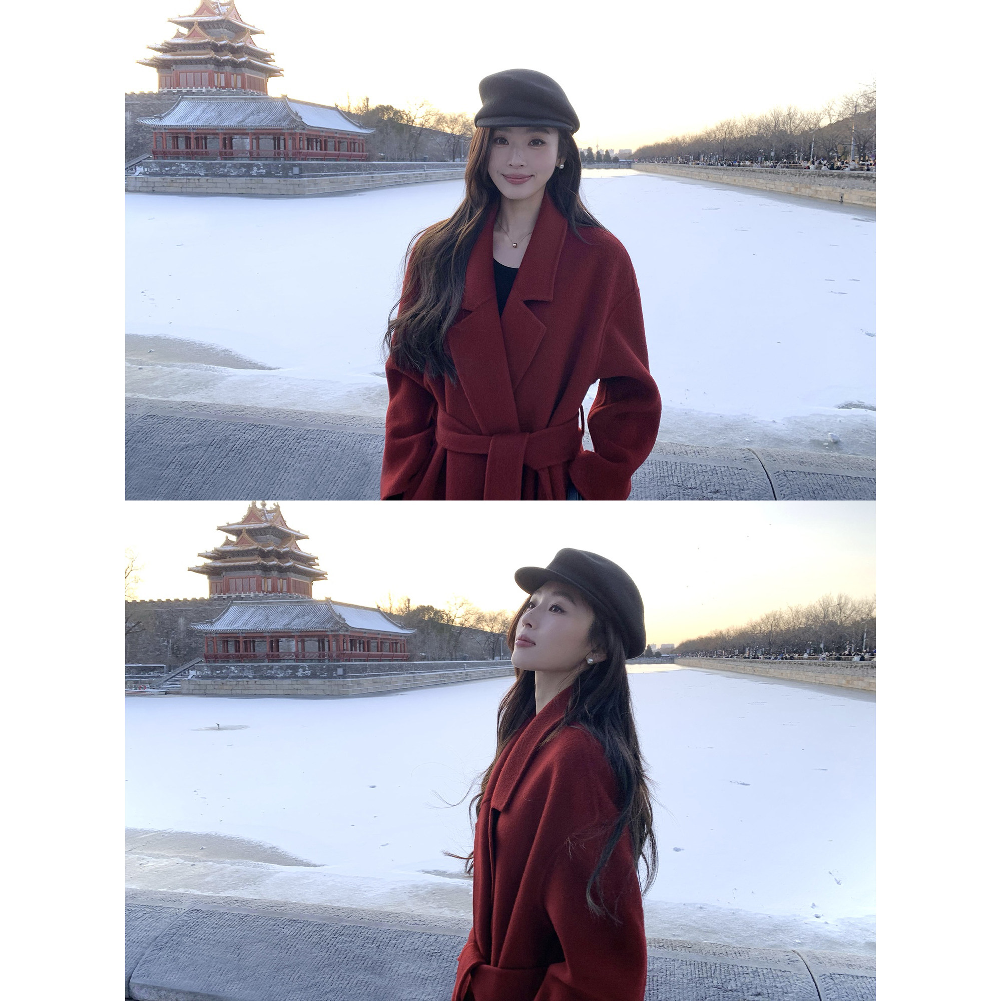 Maven Lin 羊毛100%双面羊绒大衣女中长款呢子外套腰带修身毛呢