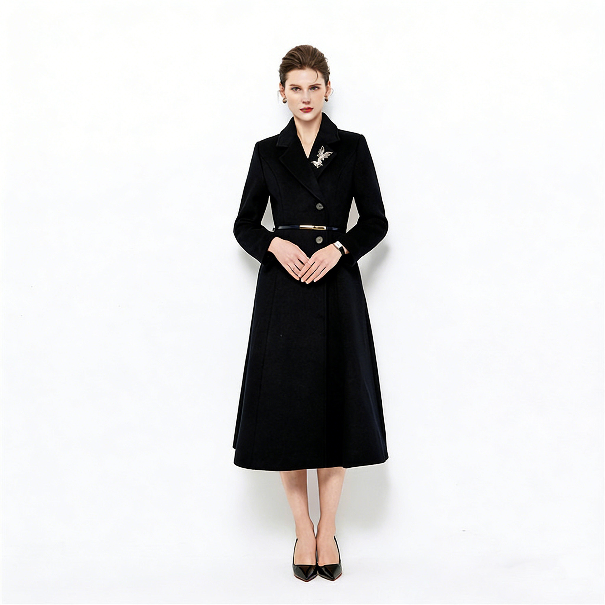 双面绒大衣中长款西装领黑色腰带修身2025秋冬新款气质毛呢外套女
