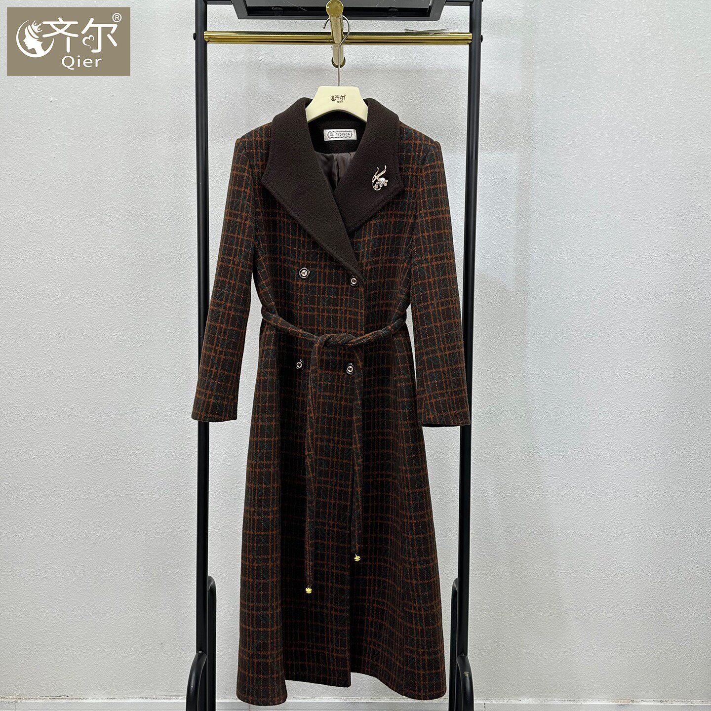 羊织道 露珠 丝驼毛大衣女加厚保暖秋冬新款中长款腰带毛呢外套