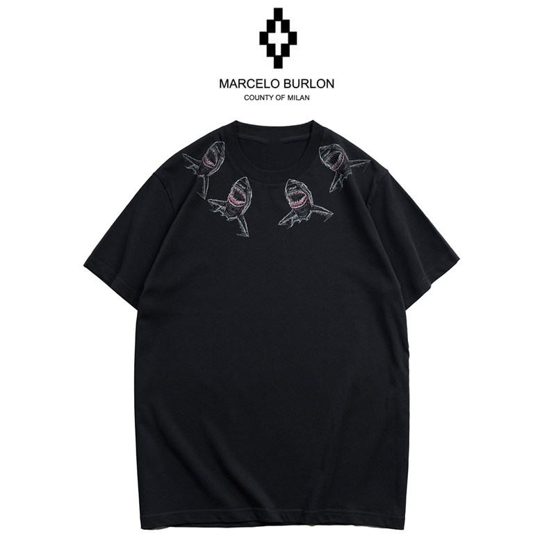 正品 Marcelo Burlon马塞洛布隆MB翅膀鲨鱼印花宽松短袖T恤男女款