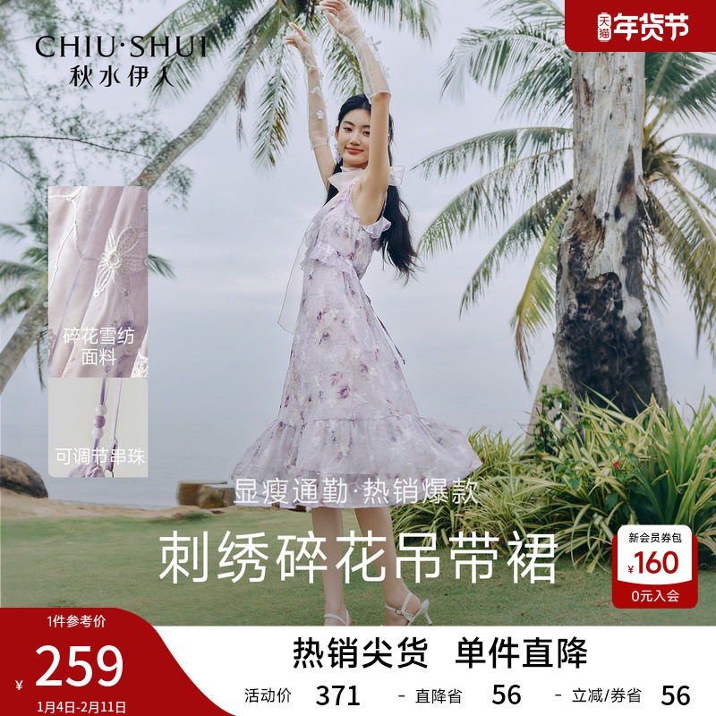 秋水伊人性感碎花吊带裙2026年春季新款简约仙气荷叶边印花连衣裙