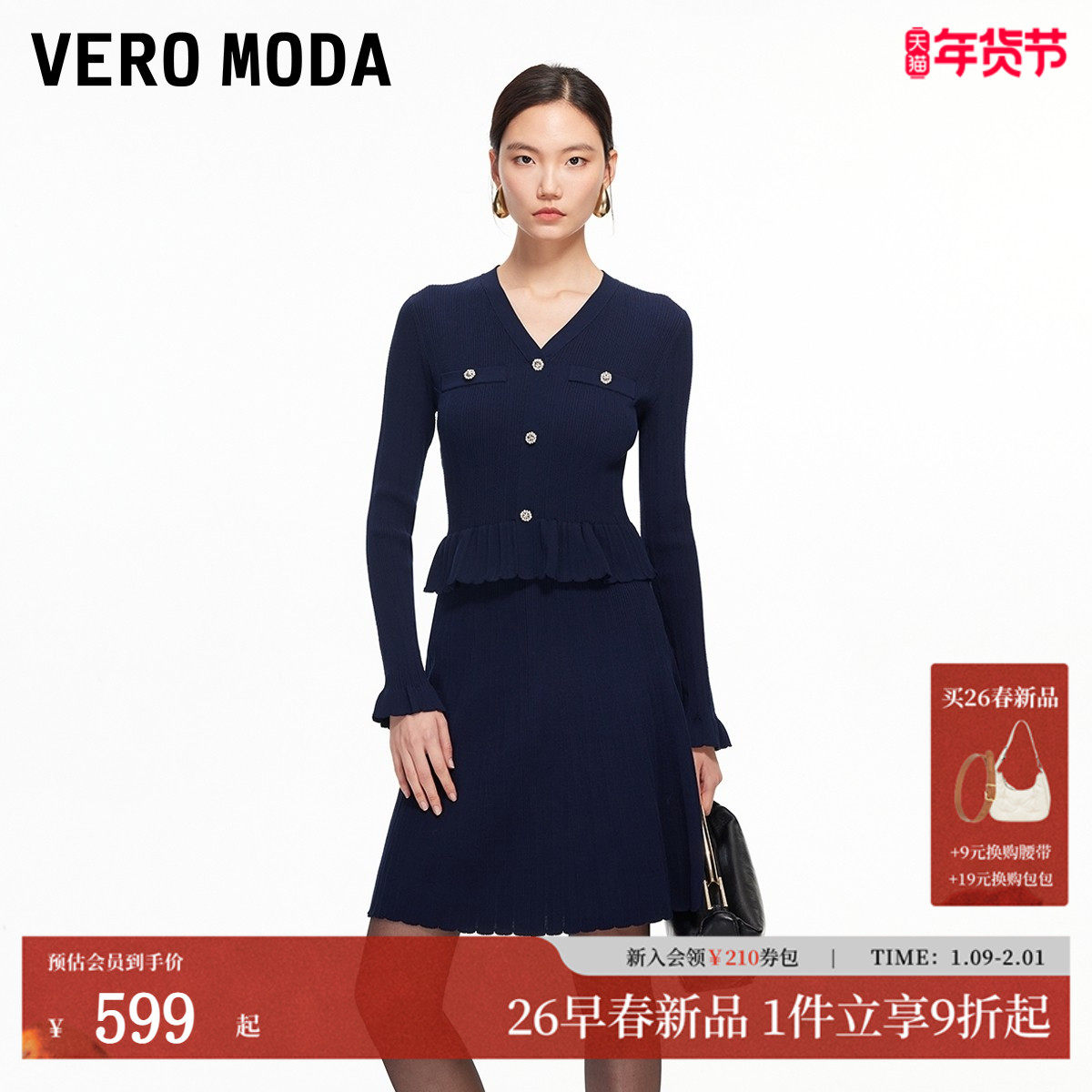 Vero Moda连衣裙2026春季新款V领法式荷叶边拼接针织裙经典时髦