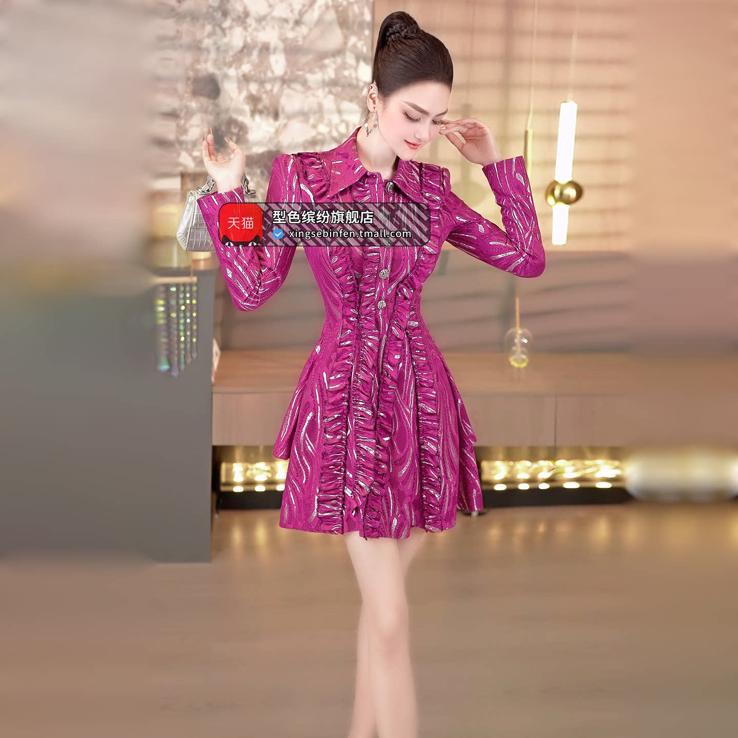 春季时尚荷叶边洋气收腰衬衫裙2026新款气质减龄职场风衣连衣裙
