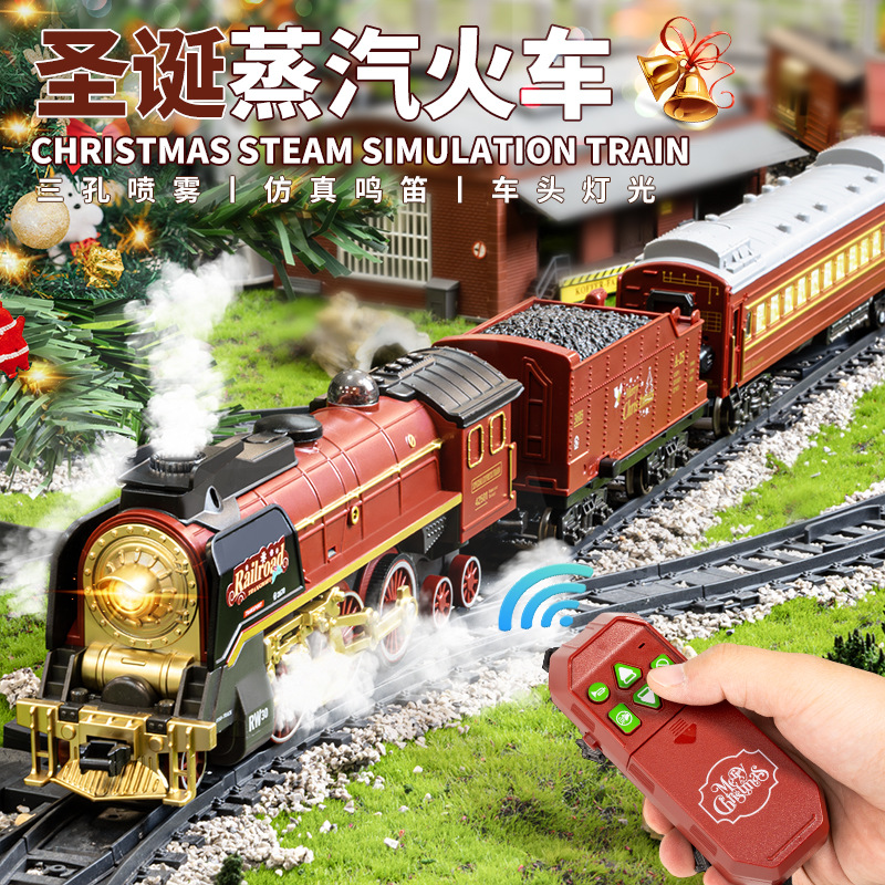 儿童电动蒸汽小火车玩具男孩遥控喷雾仿真合金模型带高铁绿皮轨道