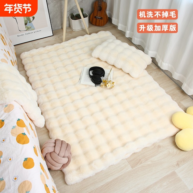 ins仿兔毛地毯客厅卧室茶几床边满铺可机洗定制加厚毛绒飘窗地垫