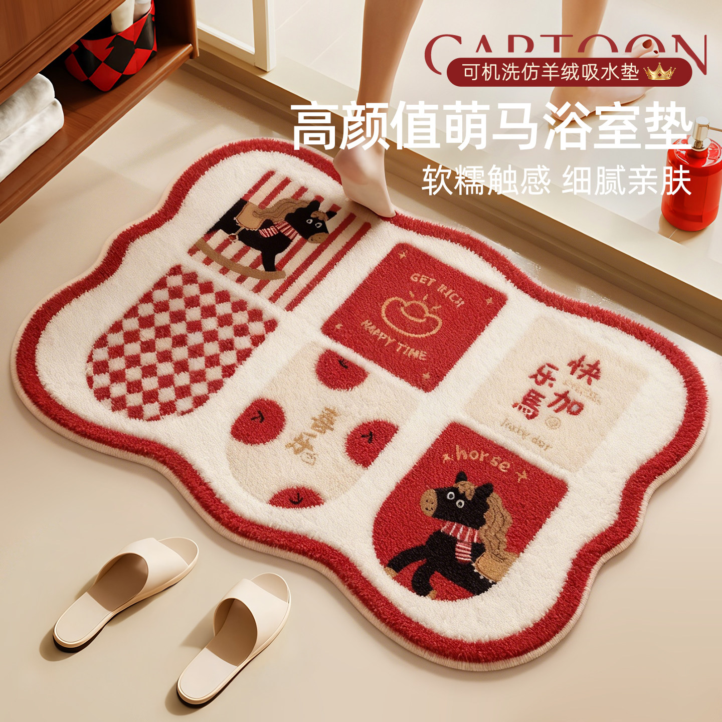 新年仿羊绒浴室吸水地垫卫生间门口防滑脚垫冬季加厚厕所毛绒地毯