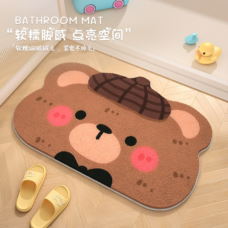 卡通小熊浴室地垫洗手间吸水卫生间防滑脚垫厕所门口毛绒地毯卫浴
