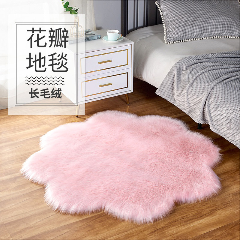 花瓣形毛绒地毯卧室床边毯床前少女北欧异形长毛梅花粉色毛毯地垫