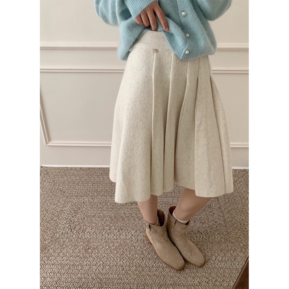 2025新款秋冬季韩系轻熟中款a字加厚针织百褶灰色半身裙子女士