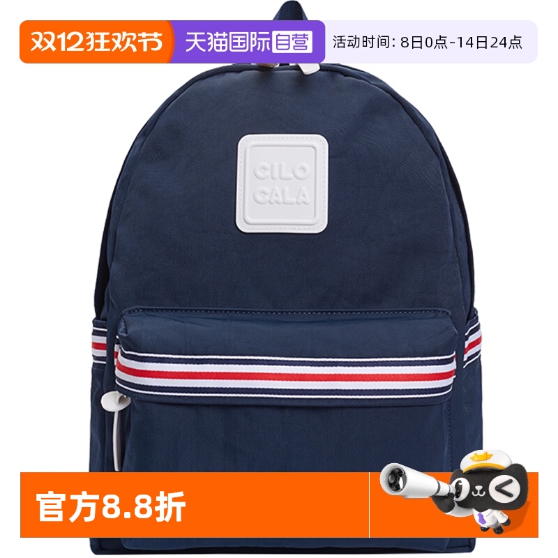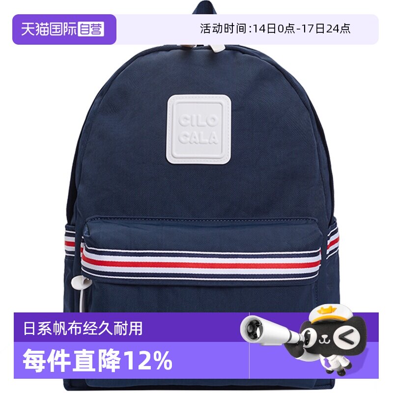 【自营】CILOCALA日本多尺寸尼龙双肩包女书包背包电脑进口条纹