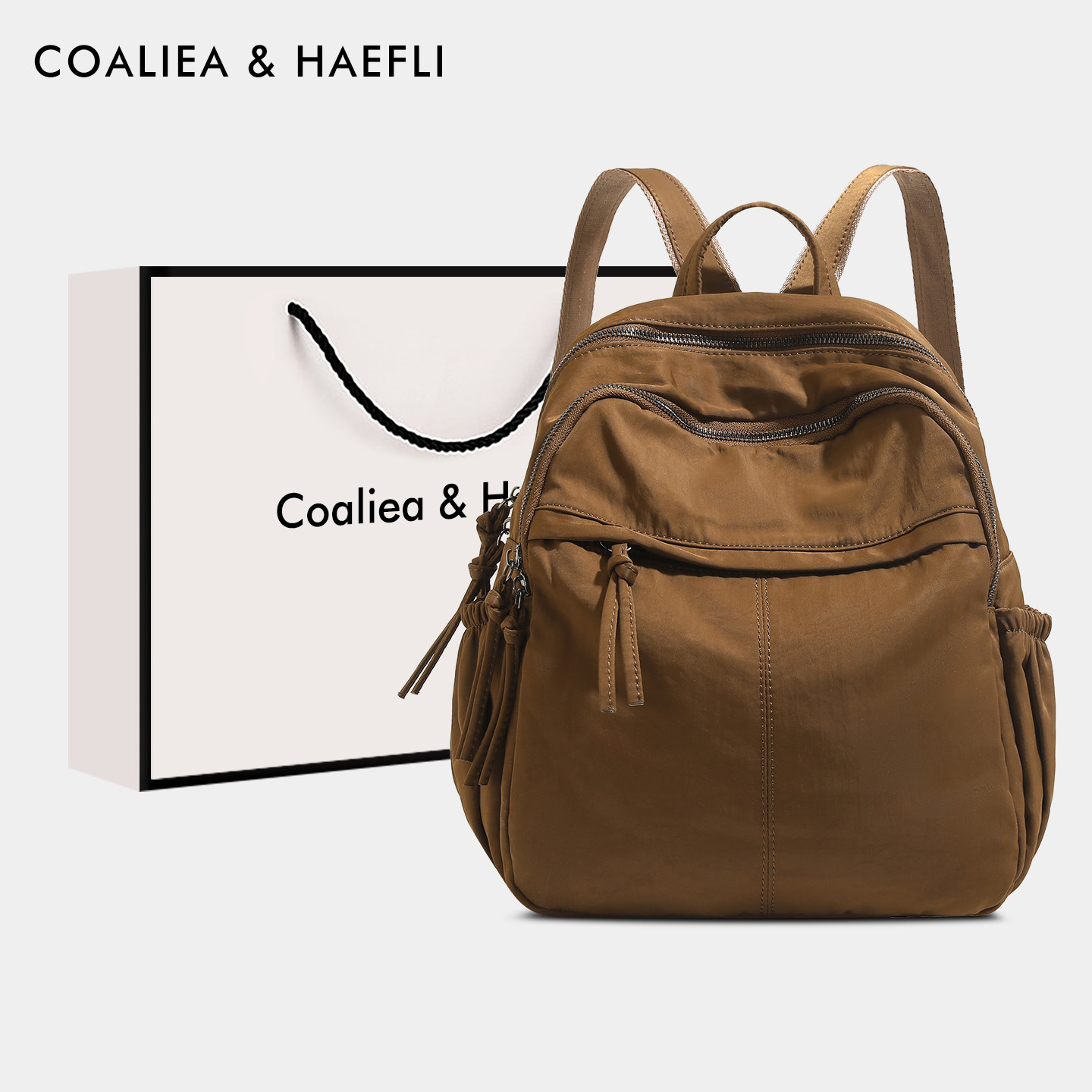 Leff通勤尼龙双肩包女2025新款轻便旅游大学生书包帆布迷你小背包
