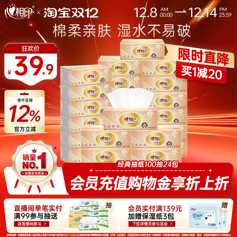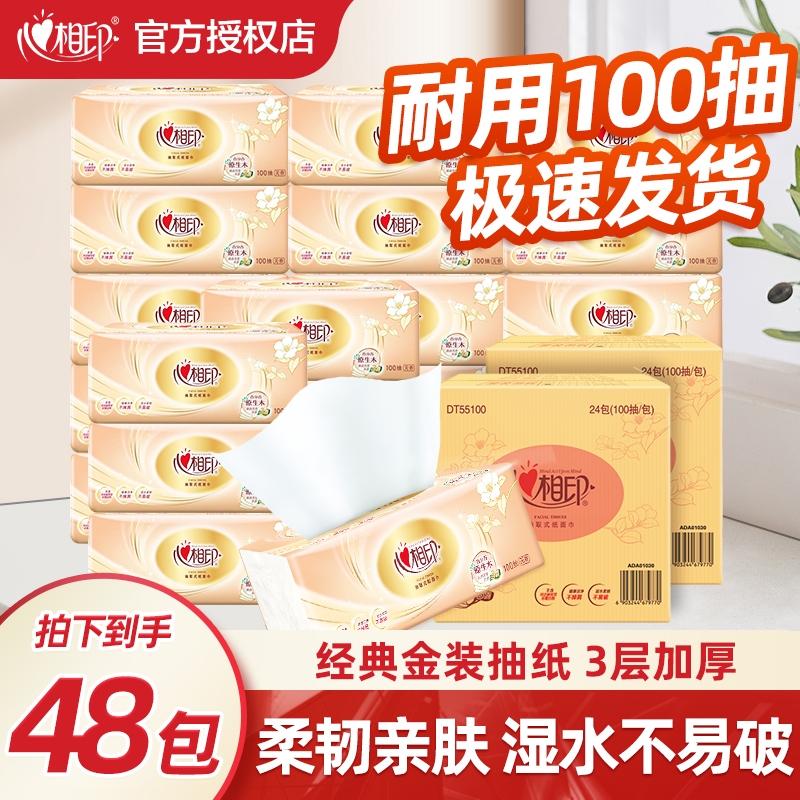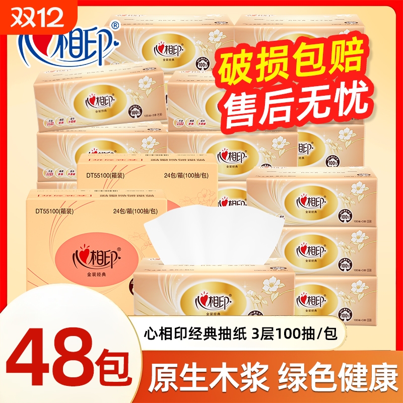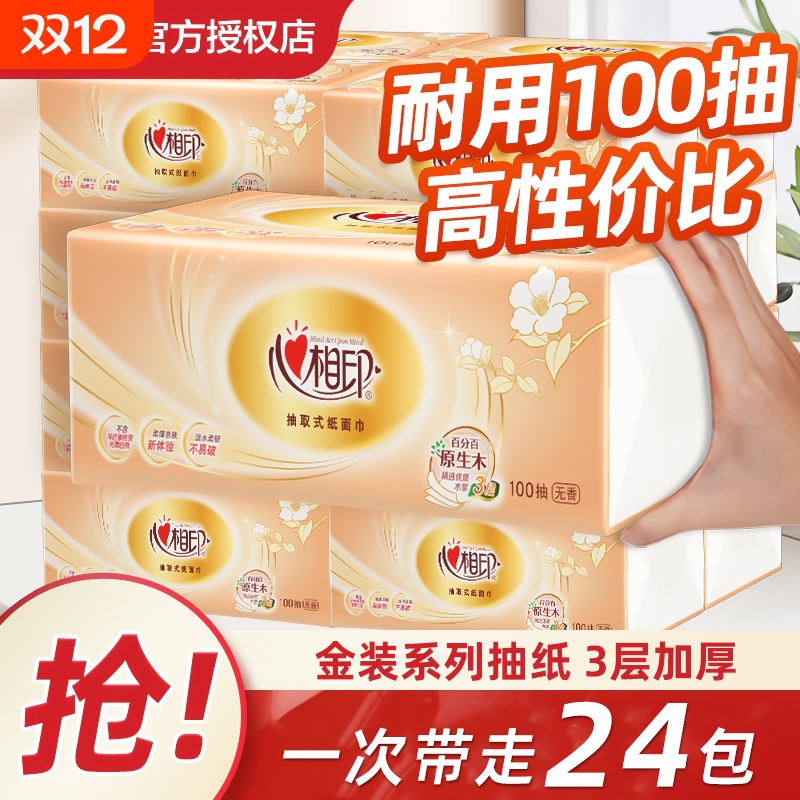 心相印抽纸金装经典系列纸巾100抽24包整箱装餐巾纸批发卫生纸