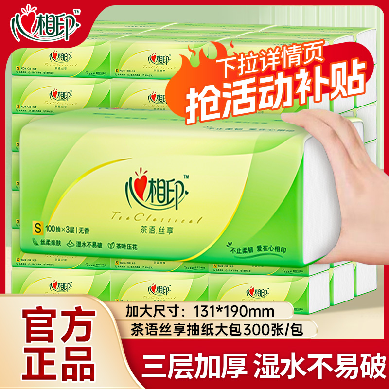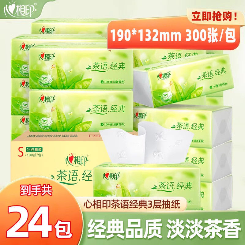 心相印茶语经典抽纸茶香3层100抽可湿水面巾纸纸巾家用餐巾纸批发