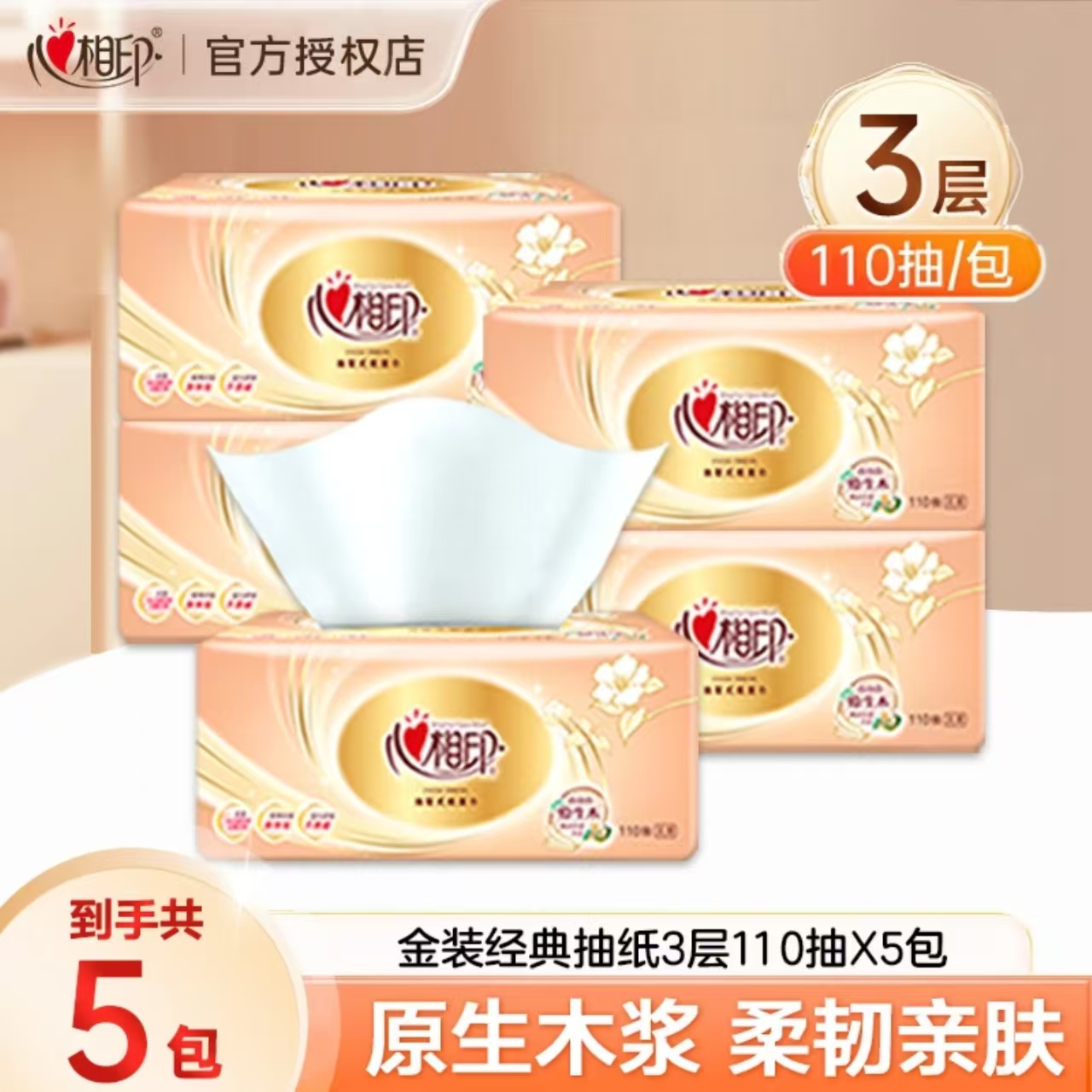 心相印抽纸3层加厚批发家用卫生纸餐巾纸面巾纸大包整箱原生原木