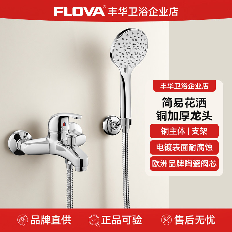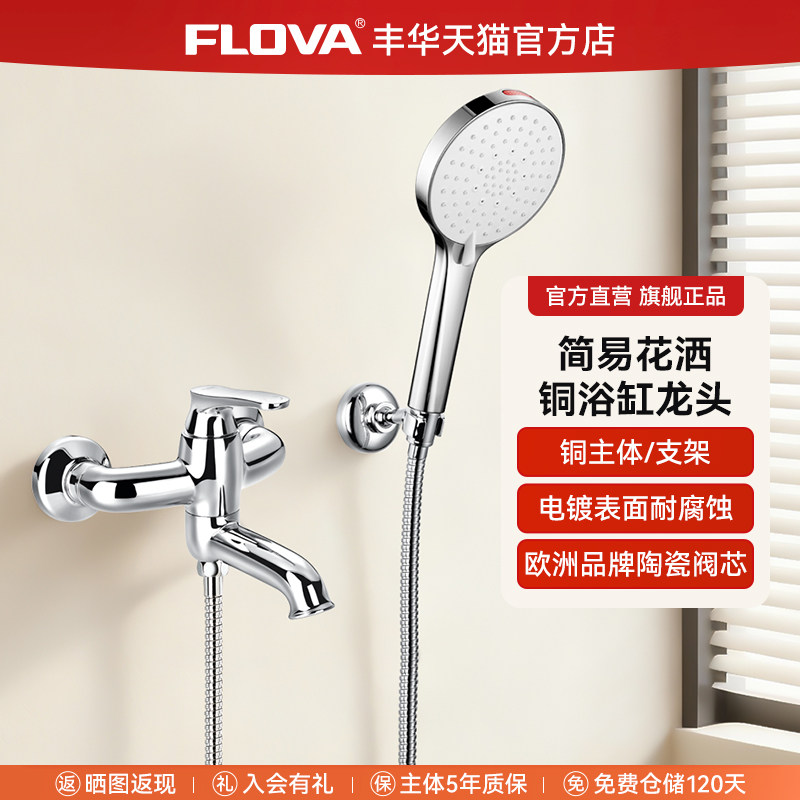 FLOVA丰华 浴室三联水龙头混水阀明装简易支架冷热浴缸龙头花洒头